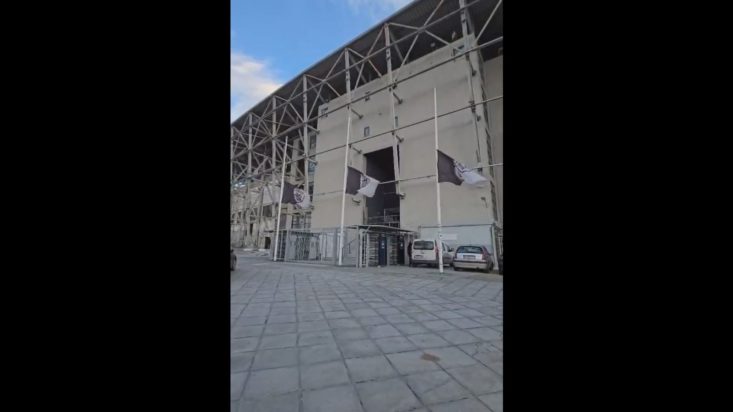 Σε μια συμβολική και βαθιά ανθρώπινη κίνηση, οι σημαίες στην Τούμπα κυματίζουν μεσίστιες, αποτυπώνοντας το κλίμα οδύνης που επικρατεί στις τάξεις της ομάδας και των οπαδών της.