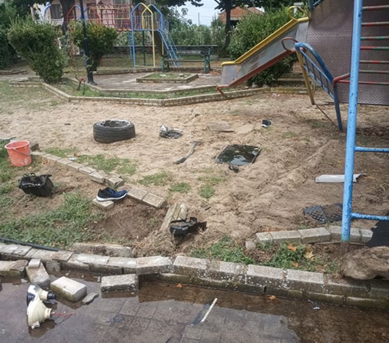 Στις φωτογραφίες, που δημοσιεύει το proininews.gr, φαίνονται οι ζημιές που προκλήθηκαν στην παιδική χαρά.
