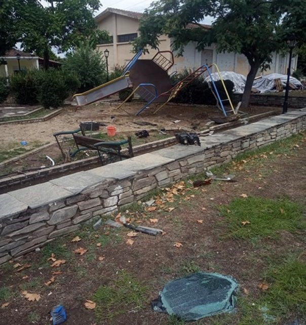 Στις φωτογραφίες, που δημοσιεύει το proininews.gr, φαίνονται οι ζημιές που προκλήθηκαν στην παιδική χαρά.
