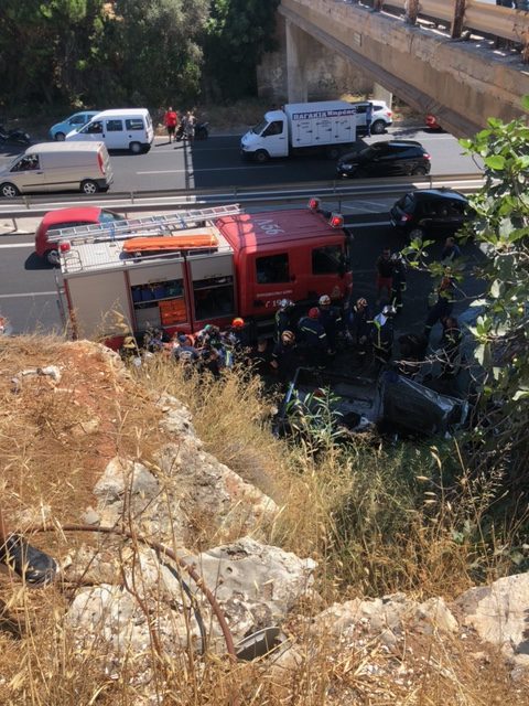 Στις φωτογραφίες που δημοσιεύει το cretalive.gr από το σημείο του δυστυχήματος διακρίνονται οι άνδρες της πυροσβεστικής κατά την προσπάθεια τους να απεγκλωβίσουν τους τρεις άνδρες από τα συντρίμμια του αυτοκινήτου.