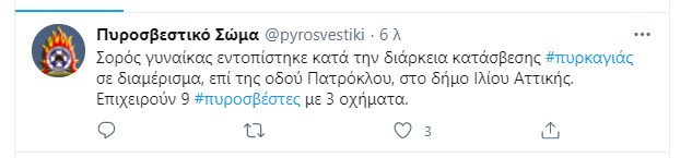 Νεκρή εντόπισαν οι πυροσβέστες μια γυναίκα στο διαμέρισμά της στο Ίλιον. Ξέσπασε φωτιά, για άγνωστες μέχρι στιγμής συνθήκες. Το διαμέρισμα βρίσκεται επί της οδού Πατρόκλου και στο σημείο έσπευσαν εννέα πυροσβέστες με τρία οχήματα.