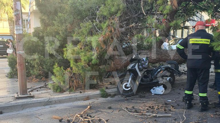 Ανείπωτη τραγωδία στο Ηράκλειο της Κρήτης το απόγευμα της Πέμπτης με έναν οδηγό μηχανής να χάνει τη ζωή του, όταν καταπλακώθηκε από δέντρο.
