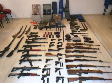 - 18 πολεμικά τυφέκια διαφόρων τύπων (Kalashnikov, αυτόματο M16, αυτόματο Η&Κ, υποπολυβόλο PPS, εμπροσθογεμές κ.α)