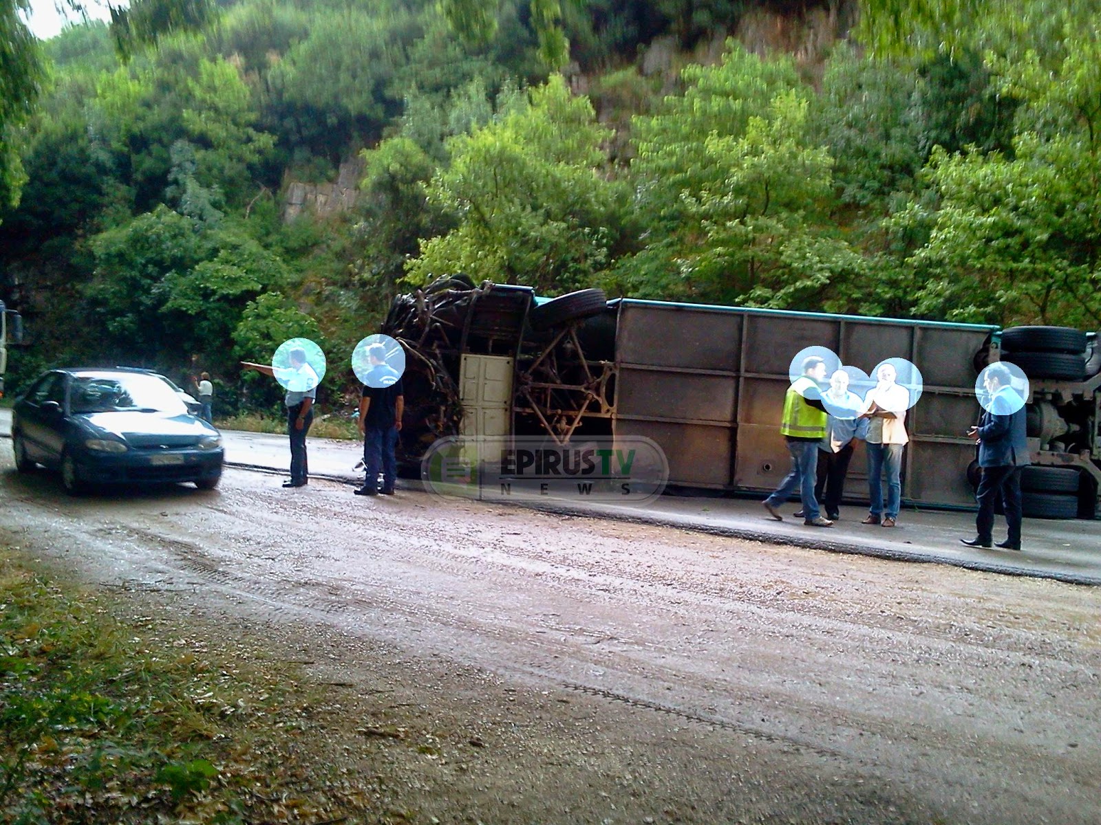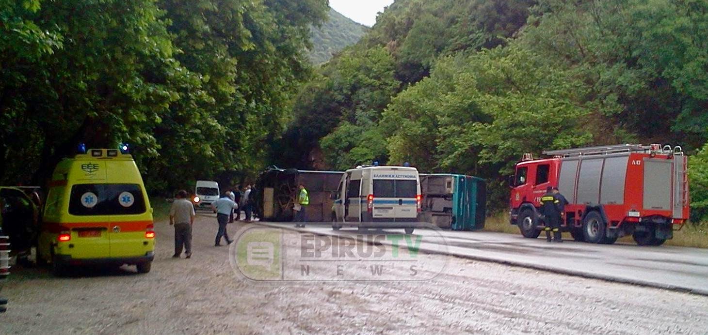 Στο ΚΤΕΛ Ιωαννίνων ανήκει το λεωφορείο που ανετράπη στη θέση Πλατανάκια Τερόβου, 30 χιλιόμετρα πριν από τα Ιωάννινα.