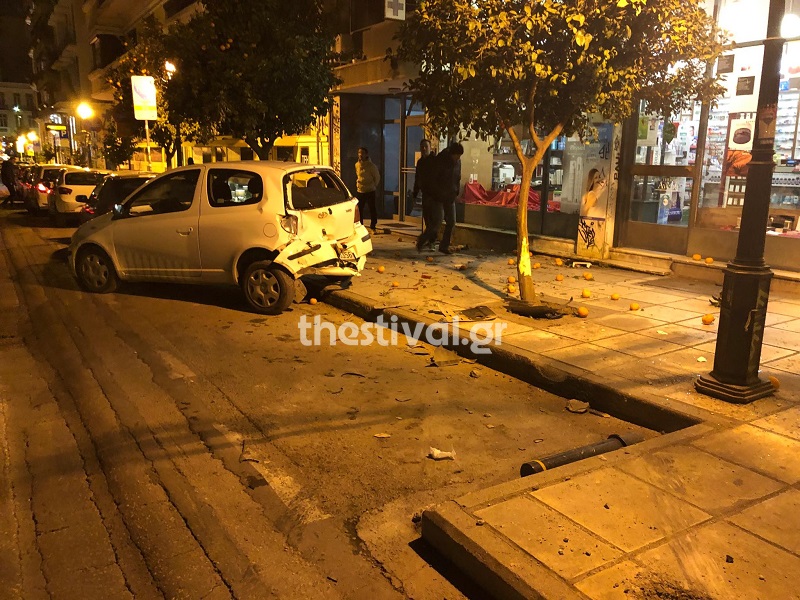 Ι.Χ. αυτοκίνητο ξέφυγε από την πορεία του και προσέκρουσε σε σταθμευμένα Ι.Χ. στην Θεσσαλονίκη. Εν συνεχεία, ξήλωσε προστατευτικούς πασσάλους και τράπηκε σε φυγή.