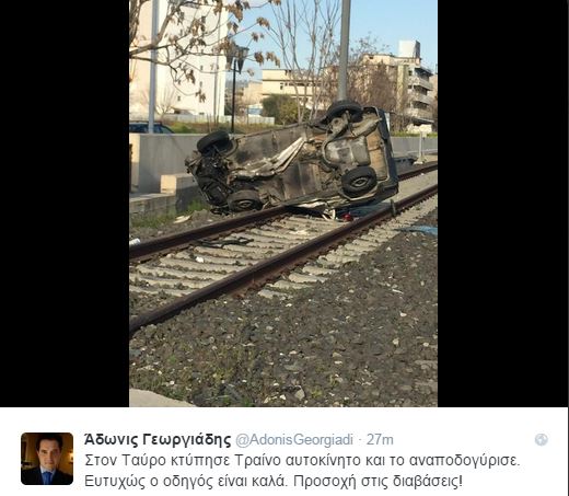 Ατύχημα σημειώθηκε πριν από λίγο στον Ταύρο όταν τρένο παρέσυρε αυτοκίνητο.