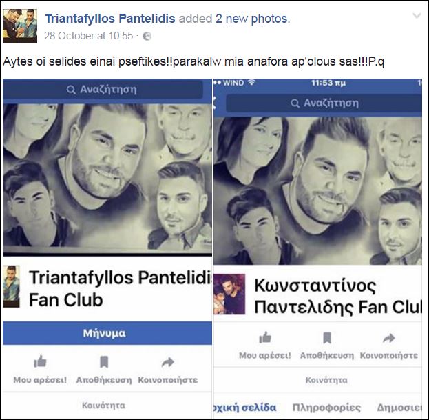 Αφορμή στάθηκε το γεγονός ότι, υπάρχουν στο διαδίκτυο ψεύτικες σελίδες αφιερωμένες στον γνωστό τραγουδιστή, με τον Τριαντάφυλλο Παντελίδη να γράφει στο facebook: «Αυτές οι σελίδες είναι ψεύτικες. Σας παρακαλώ μία αναφορά απ’ όλους!!!P.q».