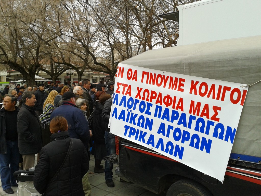 Οι παραγωγοί έστειλαν υπόμνημα στον υπουργό Οικονομικών Γιάννη Στουρνάρα, το κατέθεσαν και στον αντιπεριφερειάρχη Τρικάλων Χρήστο Μιχαλάκη, σημειώνοντας πως: «παρά τις συνεχιζόμενες αντιδράσεις όλων των συναδέλφων παραγωγών καθώς και το ότι έχει διαπιστωθεί ότι είναι αντισυνταγματικό να φορολογείται κανείς δυο φορές για το ίδιο αντικείμενο εργασίας ως παραγωγός στο χωράφι και έμπορος στο χώρο των λαϊκών αγορών, δεν αλλάζει κάτι».