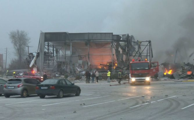 Όπως μεταδίδει η ΕΡΤ, δύο τμήματα φλέγονται από τις 04:00 τα ξημερώματα. Το ωστικό κύμα έκοψε στα δύο το εργοστάσιο, αφού κατέρρευσε τοίχος και στην συνέχεια έπεσε η οροφή.