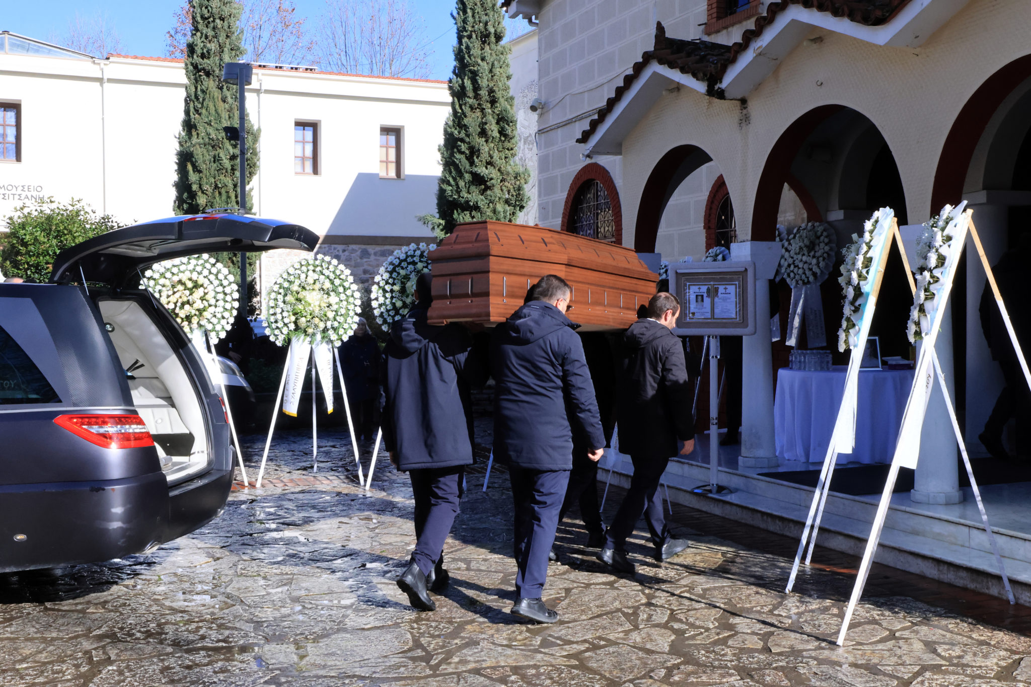 Στον ναό Αγίου Κωνσταντίνου και Ελένης, έχουν συγκεντρωθεί συγγενείς και φίλοι της αδικοχαμένης γυναίκας, προκειμένου να της πουν το τελευταίο «αντίο».