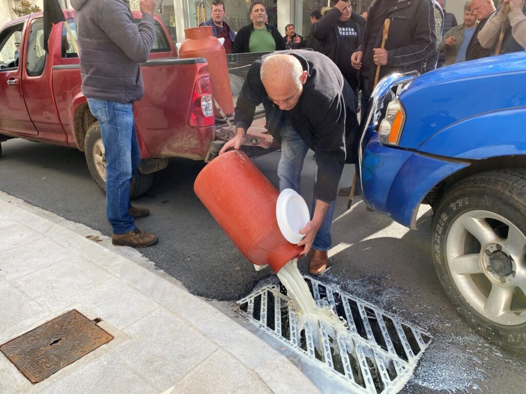 Η κινητοποίησή τους έληξε, με συμβολικό χύσιμο γάλατος, σε φρεάτιο, έξω απ’ την κεντρική είσοδο της Περιφέρειας Πελοποννήσου.