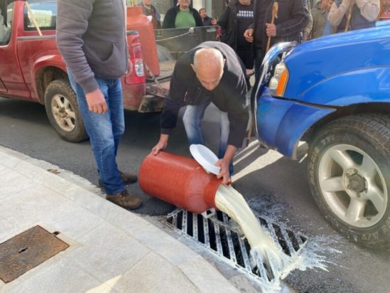 Η κινητοποίησή τους έληξε, με συμβολικό χύσιμο γάλατος, σε φρεάτιο, έξω απ’ την κεντρική είσοδο της Περιφέρειας Πελοποννήσου.
