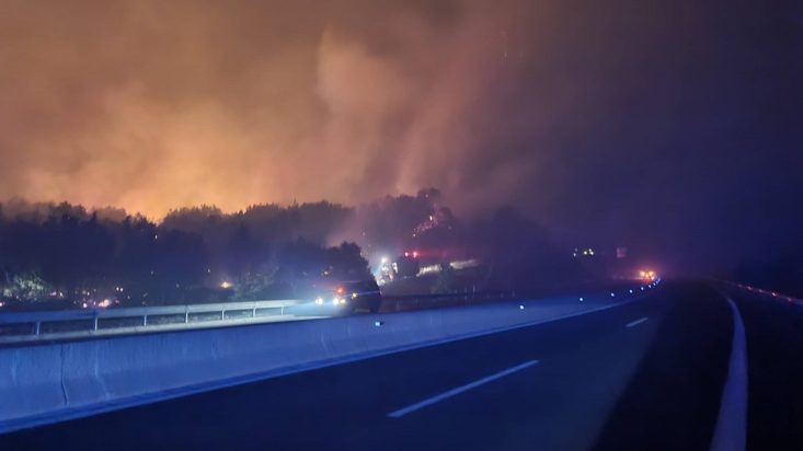 Η φωτιά παρουσιάζει ελαφρώς καλύτερη εικόνα, ωστόσο ακόμα δεν έχει τεθεί υπό έλεγχο. Ήδη έχουν σηκωθεί δύο εναέρια μέσα. Δύο ελικόπτερα, τα οποία με το πρώτο φως της ημέρας ξεκίνησαν τις ρίψεις νερού, προκειμένου να οριοθετήσουν τις εστίες της πυρκαγιάς.