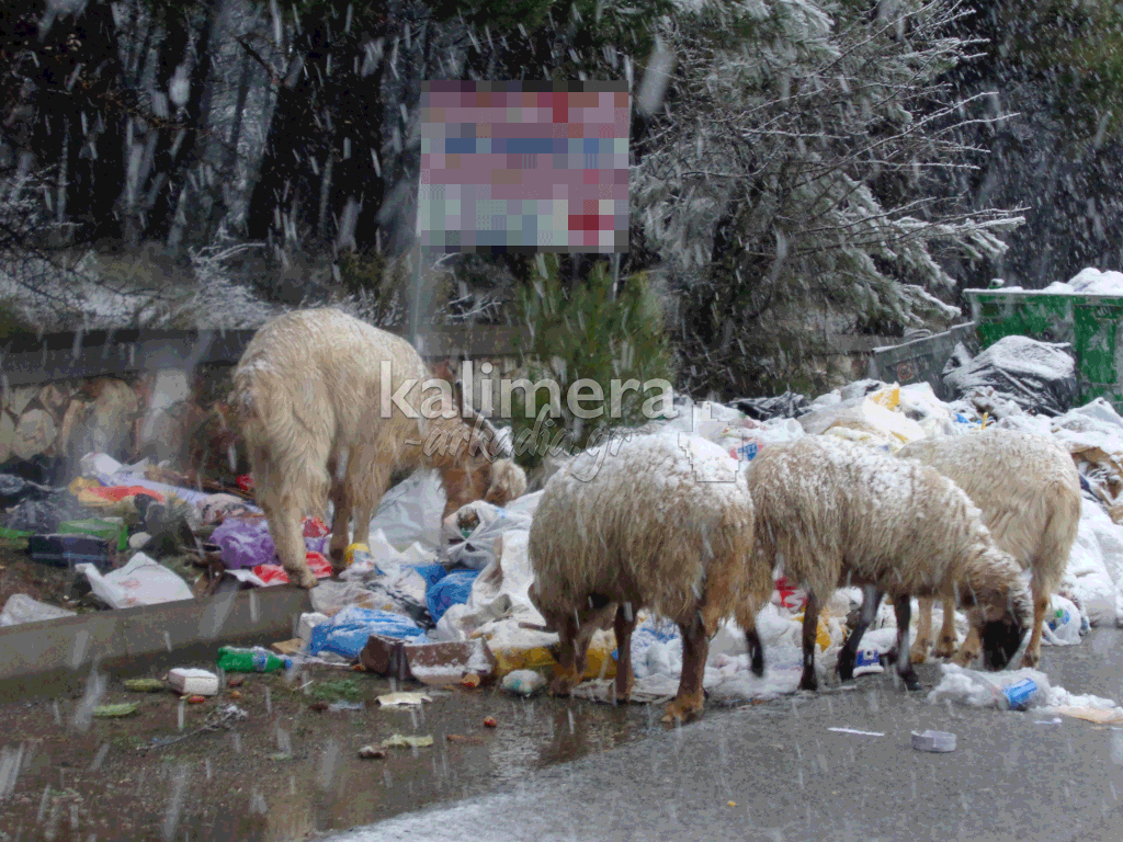 Μέσα σε όλα αυτά, απαράδεκτες εικόνες με ζώα (γίδια και πρόβατα) να τρώνε από σωρούς απορριμμάτων στο κέντρο της πόλης.