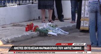 Τρισάγιο τελέστηκε, πριν από λίγο, στο σημείο που έπεσε νεκρός από τα πυρά ληστών, στου Ρέντη ο 54χρονος φαρμακοποιός.