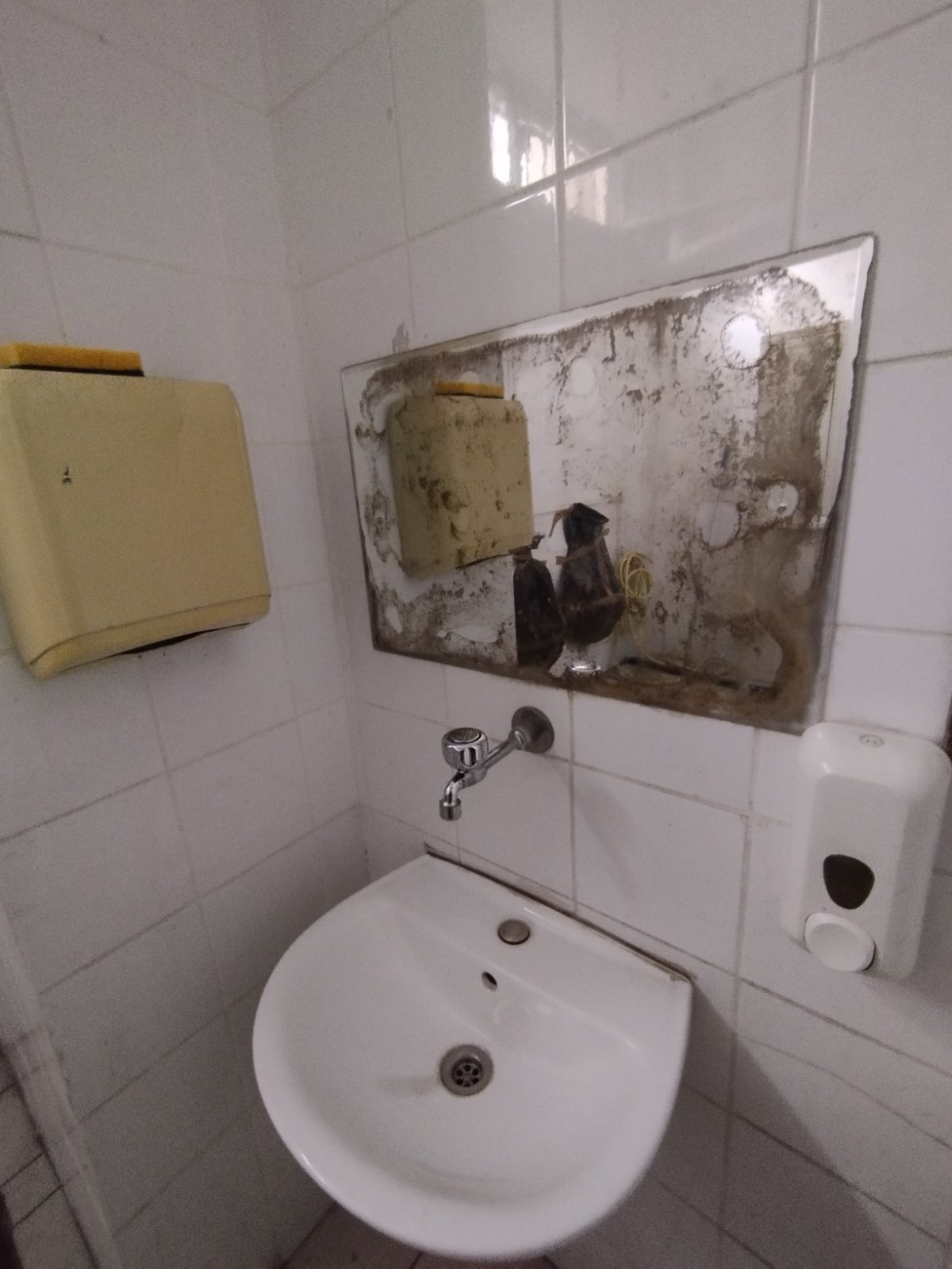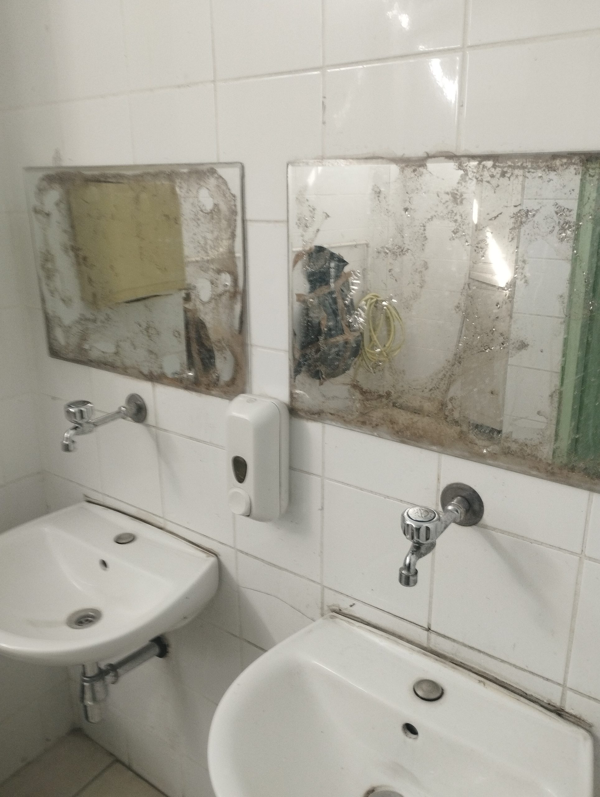 ΤΟΥΑΛΕΤΕΣ: Απαρχαιωμένη, επικίνδυνη και κατεστραμμένη υποδομή ηλικίας πολλών δεκαετιών. Πόρτες δεν κλείνουν, καζανάκια επικίνδυνα & παλιά που είτε τρέχουν συνέχεια είτε δεν δουλεύουν, καθρέπτες σπασμένοι, σιφώνια σπασμένα, απαρχαιωμένο «τουρκικό» σύστημα το οποίο πάρα πολλά παιδιά ιδιαίτερα της Α’ τάξης φοβούνται και δεν το χρησιμοποιούν. Ακατάλληλοι εντελώς χώροι. ΑΠΑΙΤΟΥΜΕ ΟΛΙΚΗ ΑΝΑΚΑΤΑΣΚΕΥΗ !