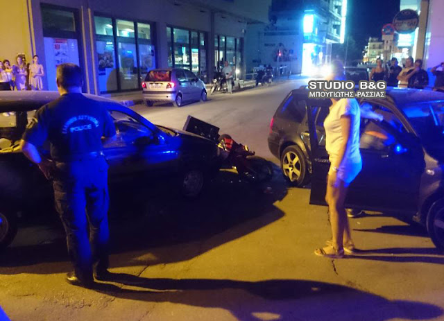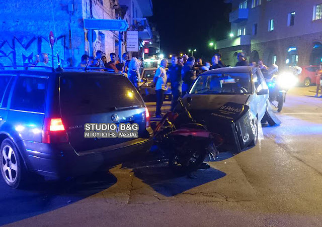 Τροχαίο ατύχημα σημειώθηκε στις 11:00 το βράδυ της Τρίτης 4 Σεπτεμβρίου στην διασταύρωση των οδών Μπουμπουλίνας και Βασ. Παύλου στο Ναύπλιο.