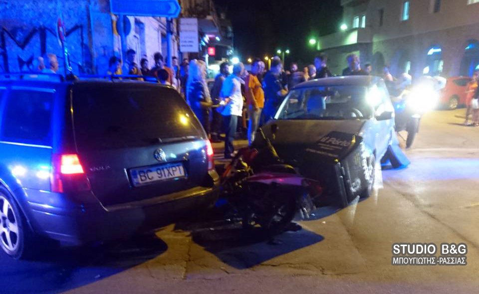 Τροχαίο ατύχημα σημειώθηκε στις 11:00 το βράδυ της Τρίτης 4 Σεπτεμβρίου στην διασταύρωση των οδών Μπουμπουλίνας και Βασ. Παύλου στο Ναύπλιο.
