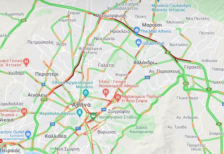 Η εικόνα της κίνησης στους δρόμους αυτή τη στιγμή