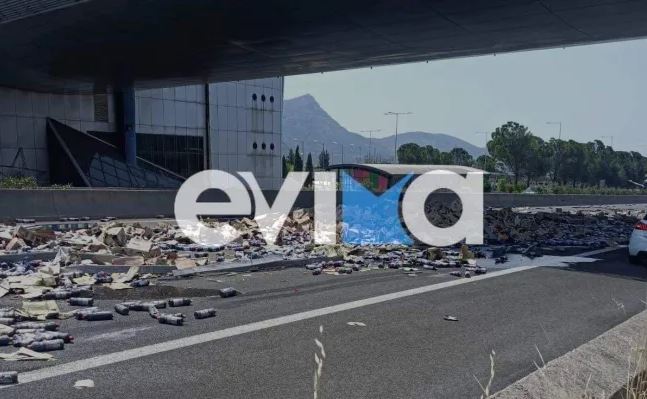 Σύμφωνα με το evima.gr λόγω της σύγκρουσης, που έγινε κάτω από άγνωστες συνθήκες, ο δρόμος γέμισε με χλωρίνες που μετέφεραν οι νταλίκες.