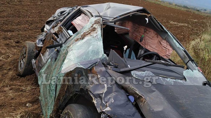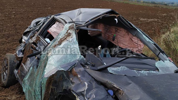 Έφερε αρκετές τούμπες πριν να καταλήξει στα χωράφια, ενώ ο 39χρονος οδηγός του που είναι κάτοικος Πολυδρόσου, εγκλωβίστηκε στα συντρίμμια.Χρειάστηκε η επέμβαση των πυροσβεστών από το Κλιμάκιο Αμφίκλειας προκειμένου να απεγκλωβιστεί και να παραδοθεί στο ασθενοφόρο του ΕΚΑΒ που έσπευσε στο σημείο.