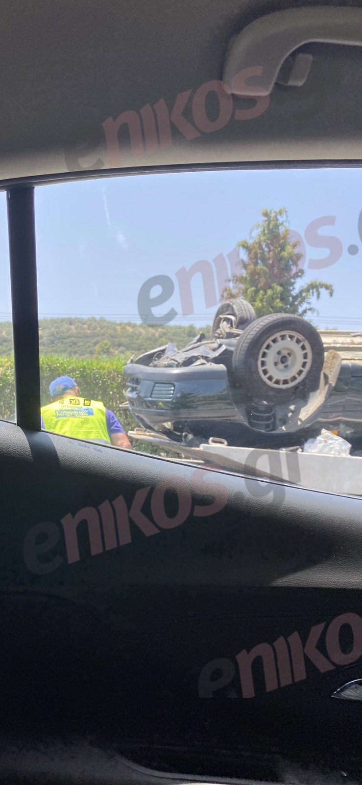 Όπως φαίνεται στις εικόνες, το εμπλεκόμενο αυτοκίνητο εξετράπη της πορείας του και τούμπαρε.