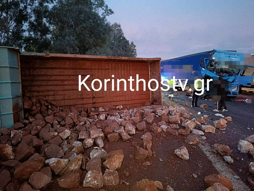Τροχαίο στην Εθνική Οδό Αθηνών – Κορίνθου: Συγκρούστηκαν δύο φορτηγά – Γέμισε πέτρες και χώματα ο δρόμος