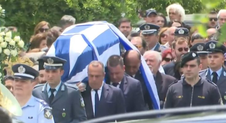 Το φέρετρο του άτυχου αρχιφύλακα της Τροχαίας ήταν τυλιγμένο με την ελληνική σημαία. Οι συνάδελφοί του στάθηκαν προσοχή, όταν το φέρετρο πέρασε από μπροστά τους, ενώ η μπάντα της ΕΛ.ΑΣ. και ο ήχος από τις σειρήνες των μηχανών της ομάδας Ζ συνοδεύουν τον αδικοχαμένο αστυνομικό στην τελευταία του κατοικία.