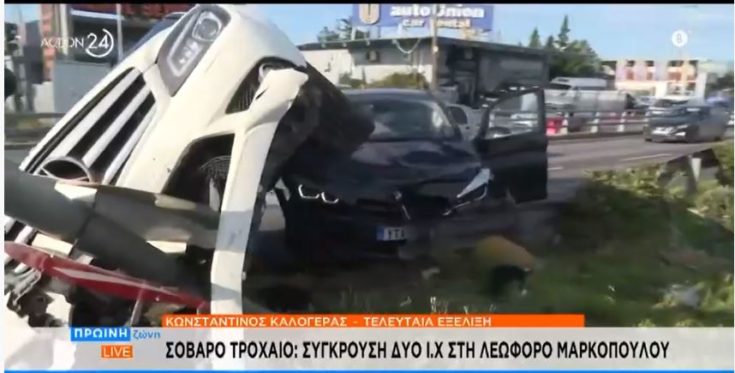 Σοβαρό τροχαίο έγινε νωρίτερα στην λεωφόρο Μαρκοπούλου. Τα πλάνα από το σημείο δείχνουν πόσο σφοδρή ήταν η σύγκρουση μεταξύ των δύο αυτοκινήτων.