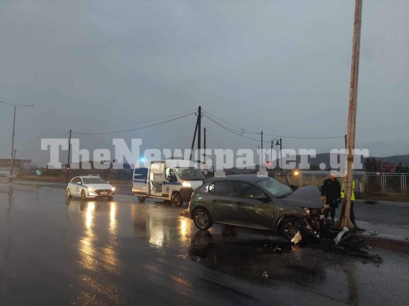 Σύμφωνα με το thenewspaper.gr, αυτοκίνητο καρφώθηκε σε κολώνα φωτισμού στο διάζωμα της λεωφόρου, πιθανά εξαιτίας της ολισθηρότητας του οδοστρώματος.