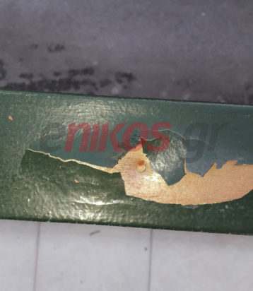 Χαρακτηριστικές είναι οι φωτογραφίες που φέρνει στη δημοσιότητα το enikos.gr και στις οποίες φαίνεται μία σφαίρα “καρφωμένη” σε κάγκελα στο μπαλκόνι διαμερίσματος.