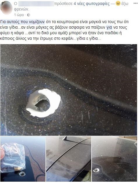 Το επικίνδυνο έθιμο με τις μπαλωθιές στην Κρήτη, φαίνεται ότι καλά κρατεί. Ωστόσο, έβγαλε εκτός εαυτού έναν Κρητικό, ο οποίος αντίκρισε το πρωί μια σφαίρα καρφωμένη στον ουρανό του οχήματος του.