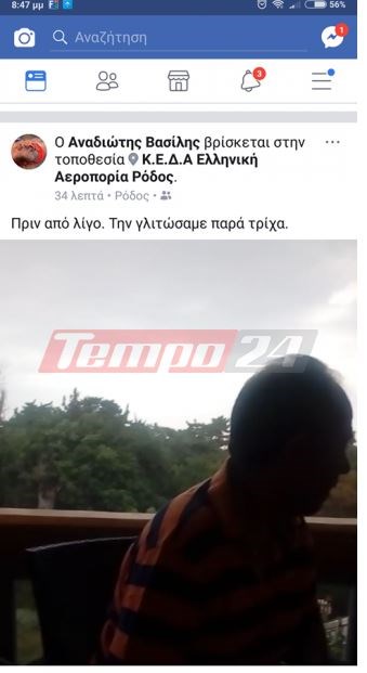 ” Παρά τρίχα τη γλιτώσαμε” , έγραψε στον προσωπικό του λογαριασμό στο facebook ο πατρινής καταγωγής Βασίλης Αναδιώτης που είχε αυτή τη συγκλονιστική εμπειρία.