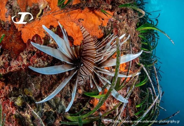 Tροπικό λιονταρόψαρο ή λεοντόψαρο όπως είναι γνωστό στο ευρύ κοινό, εντοπίστηκε σε παραλία της Χαλκιδικής, και συνελήφθη από τον φακό του υποβρύχιου φωτογράφου, Νικόλα Σαμαρά.