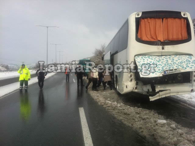 Το ατύχημα έγινε λίγο πριν τις 12.00 το μεσημέρι στο 257 χλμ. Στις στροφές των Αγίων Θεοδώρων. Σύμφωνα με το ρεπορτάζ του LamiaReport ο 36χρονος οδηγός του ΚΤΕΛ Κοζάνης ισχυρίστηκε ότι την ώρα που επιχειρούσε προσπέραση σε σταματημένο φορτηγό, ήρθε με μεγάλη ταχύτητα ένα λεωφορείο με βουλγαρικές πινακίδες και έπεσε στο πίσω μέρος του δικού του οχήματος. Το ευχάριστο είναι ότι δεν υπήρξαν τραυματίες, ωστόσο, ακολούθησε πανικός λόγω και των κακών καιρικών συνθηκών, δεδομένου ότι χιόνιζε εκείνη την στιγμή. Η εθνική οδός έκλεισε για μια ώρα, ενώ οι επιβάτες του ΚΤΕΛ Κοζάνης επιβιβάστηκαν σε διερχόμενο λεωφορείο του ΚΤΕΛ Έδεσσας που τους μετέφερε στη Λάρισα, από όπου τους παρέλαβε άλλο λεωφορείο του ΚΤΕΛ Κοζάνης.