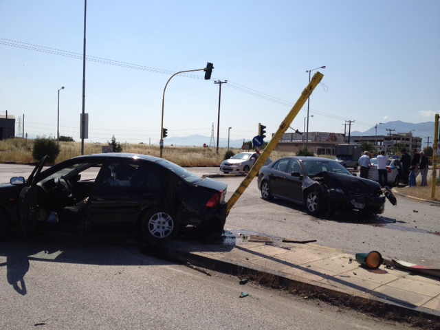 Ο 38χρονος Λαμιώτης, οδηγός του Saab, πήγαινε με την οικογένειά του από Λαμία για Καμένα Βούρλα. Στα φανάρια, από το αντίθετο ρεύμα ερχόταν το Honda με οδηγό τον 81χρονο και συνοδηγό τη σύζυγό του.Ο ηλικιωμένος οδηγός επιχείρησε να στρίψει αριστερά για να βγει στον παράδρομο της εθνικής, χωρίς να αντιληφθεί προφανώς τον σηματοδότη στον οποίο περίμενε κι άλλο αυτοκίνητο. Από τη σύγκρουση τραυματίστηκαν τα δύο κοριτσάκια του 38χρονου και η σύζυγός του, καθώς και η ηλικιωμένη σύζυγός του 81χρονου.Και οι τέσσερις τραυματίες διακομίσθηκαν στο νοσοκομείο Λαμίας, ενώ χρειάστηκε η επέμβαση των ανδρών της Π.Υ. και της 7ης ΕΜΑΚ για να απεγκλωβιστούν οι τραυματίες και να καθαριστεί το οδόστρωμα, αφού κάτω από το ένα αυτοκίνητο είχε σφηνώσει ο σηματοδότης που είχε γκρεμιστεί.Η κατάσταση των τραυματιών δεν έχει γίνει ακόμη γνωστή, ενώ η τροχαία Λαμίας εξετάζει τις συνθήκες κάτω από τις οποίες έγινε το τροχαίο.Να σημειωθεί ότι λίγη ώρα πριν και συγκεκριμένα στις 9.20΄σημειώθηκε ακόμη ένα τροχαίο στη διασταύρωση της Ξηριώτισσας. Αυτή τη φορά συγκρούστηκε λεωφορείο με Ι.Χ., ευτυχώς όμως υπήρξαν μόνο υλικές ζημιές.
