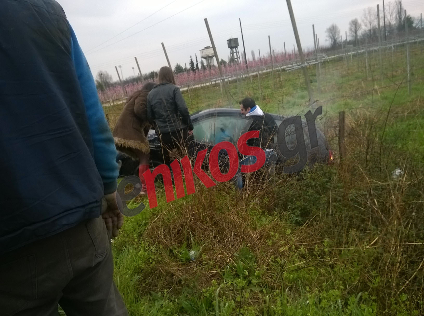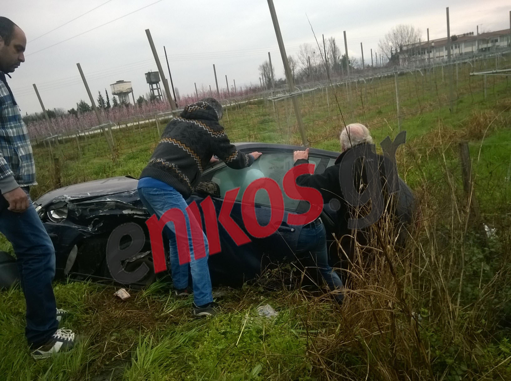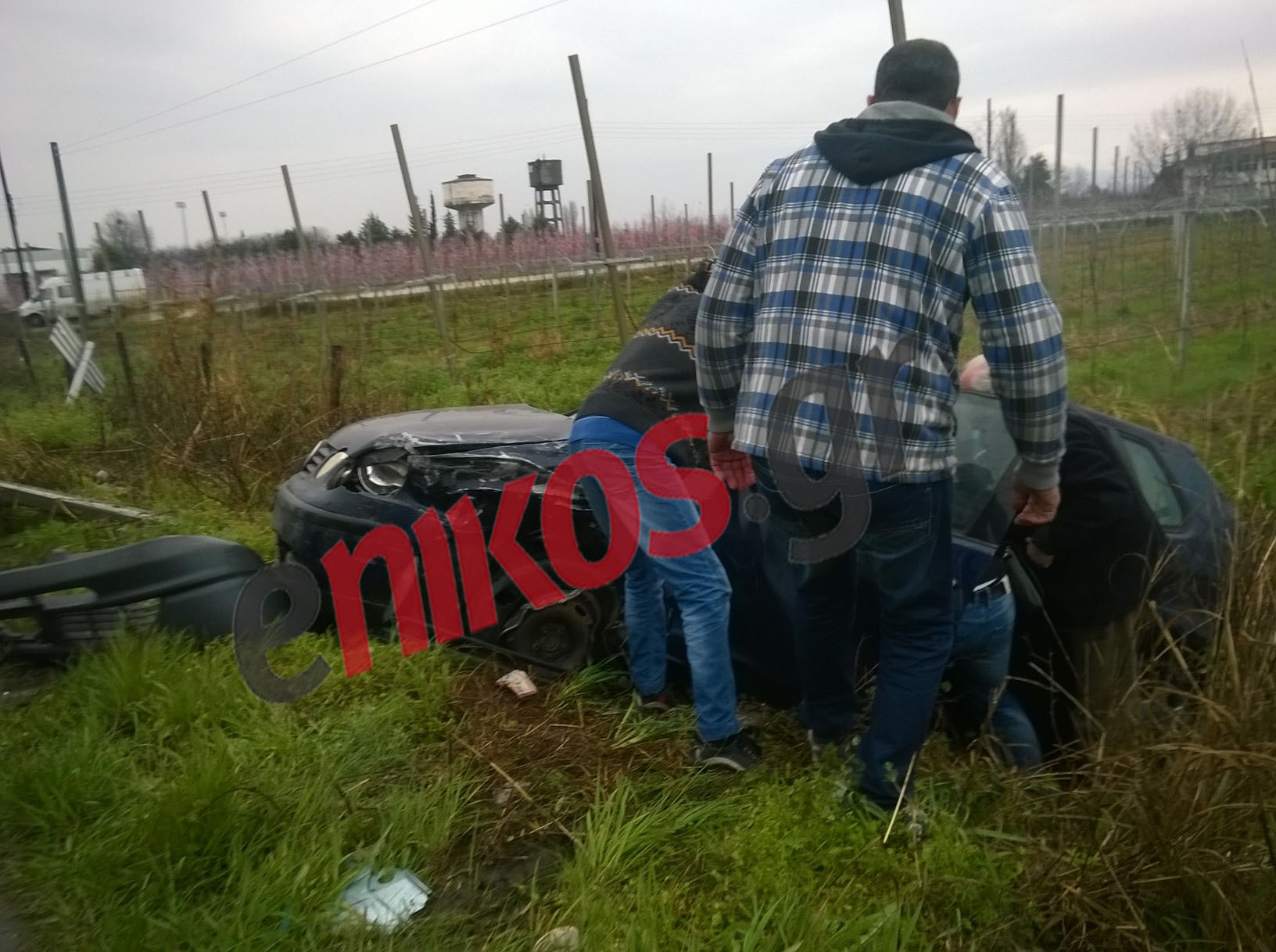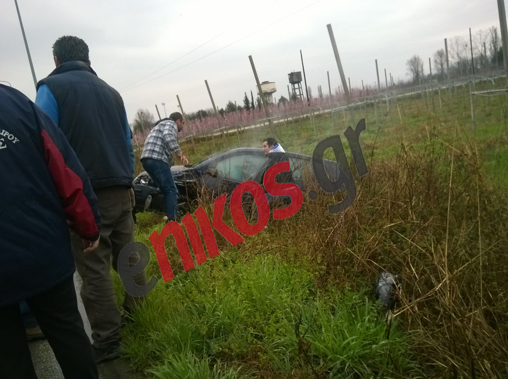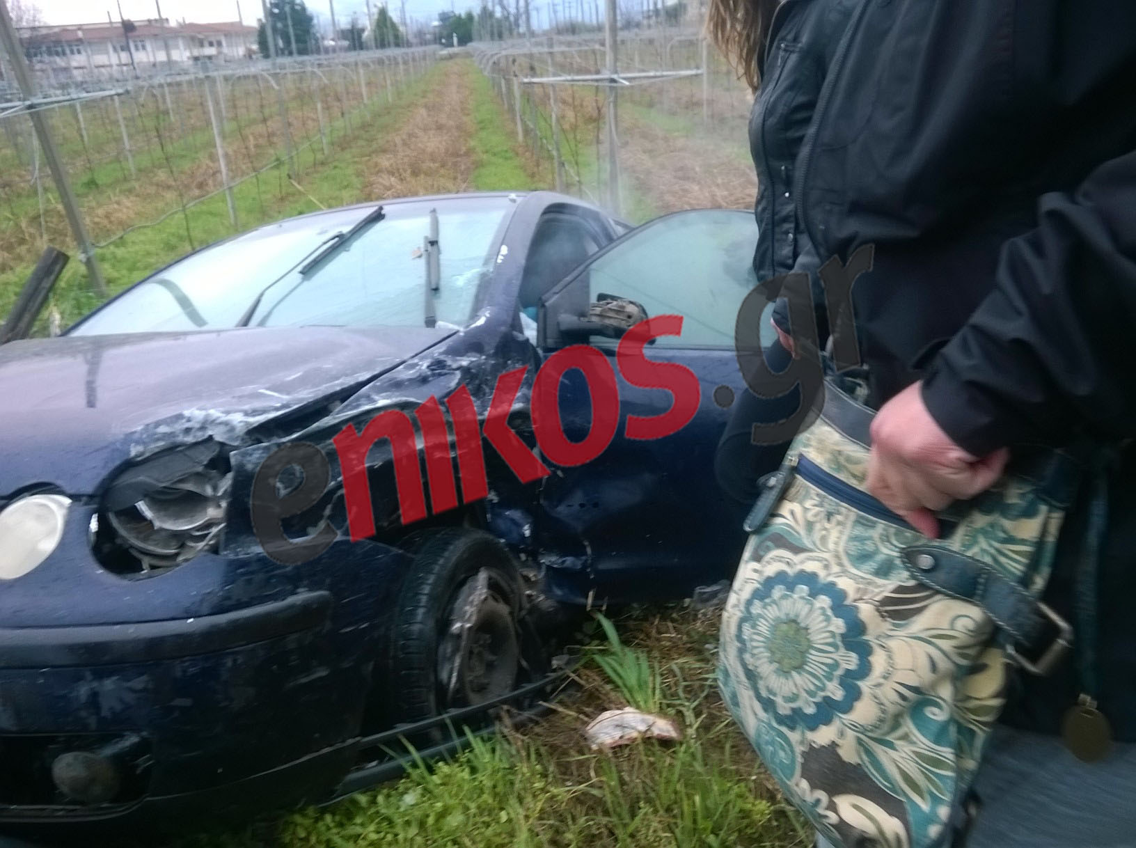 Από τη σύγκρουση των δύο οχημάτων, το Ι.Χ. αυτοκίνητο βγήκε εκτός πορείας, καταλήγοντας στο παρακείμενο οικόπεδο. Με την βοήθεια άλλων οδηγών έγινε ο απεγκλωβισμός της γυναίκας οδηγού, η οποία μεταφέρθηκε στο νοσοκομείο Βέροιας ελαφρώς τραυματισμένη.