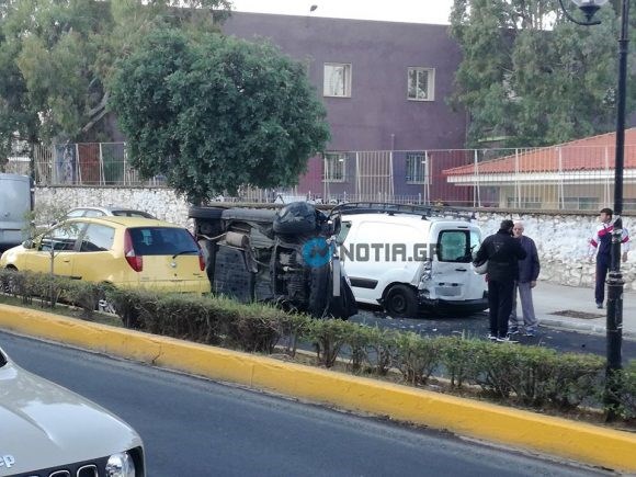Ένα τροχαίο ατύχημα σημειώθηκε το πρωί της Πέμπτης στην Ηλιούπολη, στη λεωφόρο Παπανδρέου.Ένα αυτοκίνητο, το οποίο οδηγούσε μια κοπέλα, ξαφνικά έπεσε πάνω σε ένα λευκό βανάκι. Στη συνέχεια βρέθηκε πάνω στη διαχωριστική νησίδα και κατέληξε τουμπαρισμένο στη μέση του δρόμου.Κάποιοι γείτονες έσπευσαν να βοηθήσουν τη νεαρή οδηγό να βγει από το αυτοκίνητο και ειδοποίησαν ασθενοφόρο, αλλά ευτυχώς δεν χρειάστηκε να μεταφερθεί στο νοσοκομείο. Πέρα από το ισχυρό σοκ που είχε υποστεί από το ατύχημα, διαπιστώθηκε ότι δεν έφερε κάποιο τραύμα.Αστυνομικοί του Α’ Τμήματος Τροχαίας Νοτιοανατολικής Αττικής διενεργούν προανάκριση για να διαπιστώσουν τα ακριβή αίτια που προκάλεσαν το τροχαίο, ενώ σύμφωνα με πληροφορίες, το αυτοκίνητο έπεσε πάνω στο λευκό βανάκι την ώρα που ο οδηγός του προσπαθούσε να ξεπαρκάρει.Δείτε εικόνες: