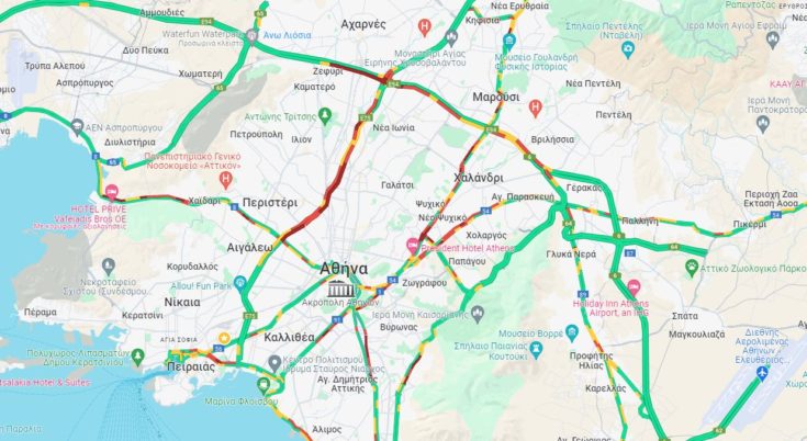 25′-30′ από Μεταμόρφωση (είσοδος από Λαμία) μέχρι Κηφισίας.