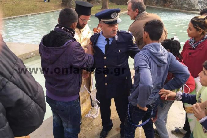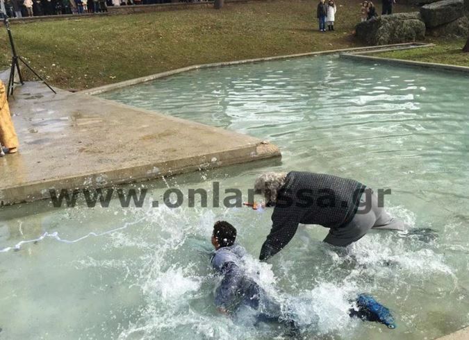Δύο άντρες πιάστηκαν στα χέρια κατά την τελετή αγιασμού των υδάτων που πραγματοποιήθηκε στις πηγές του Απιδανού ποταμού στα Φάρσαλα. Σύμφωνα με το onlarissa.gr, ο ιερέας έριξε τον Σταυρό, οι δύο άντρες έπεσαν στο νερό και στην συνέχεια τσακώθηκαν για το ποιος θα βγάλει έξω τον Σταυρό.