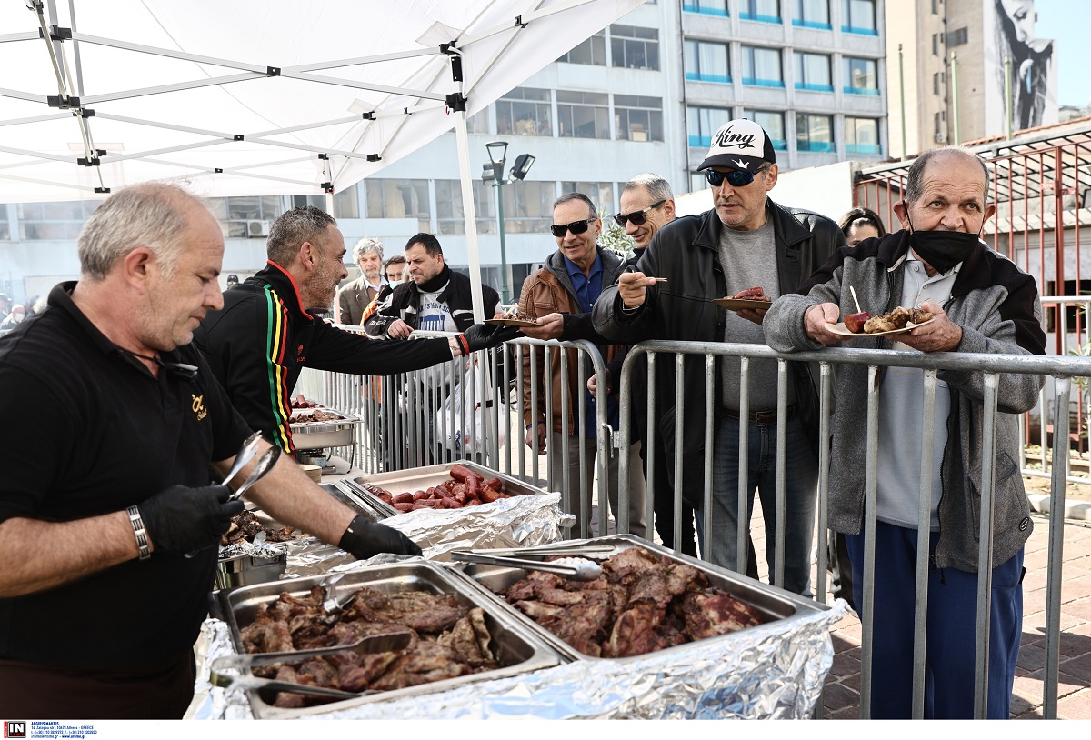 Το «παρών» στο παραδοσιακό ψήσιμο της ημέρας στη Βαρβάκειο δίνει και ο δήμαρχος Αθηναίων, Χάρης Δούκας που βρέθηκε ανάμεσα στον κόσμο.