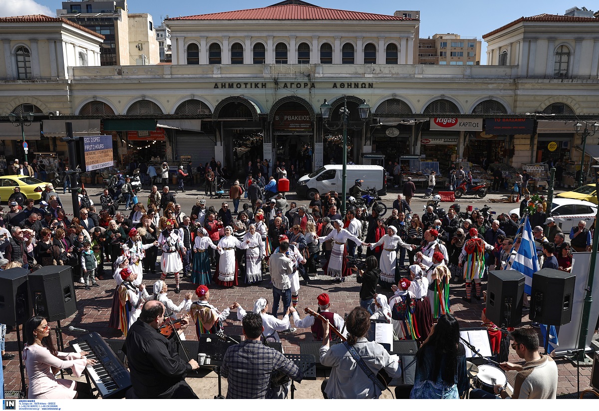 Πλήθος κόσμου βρίσκεται στην Βαρβάκειο Αγορά της Αθήνας, όπου πραγματοποιείται το παραδοσιακό «τσίκνισμα» χάριν του εθίμου της Τσικνοπέμπτης.