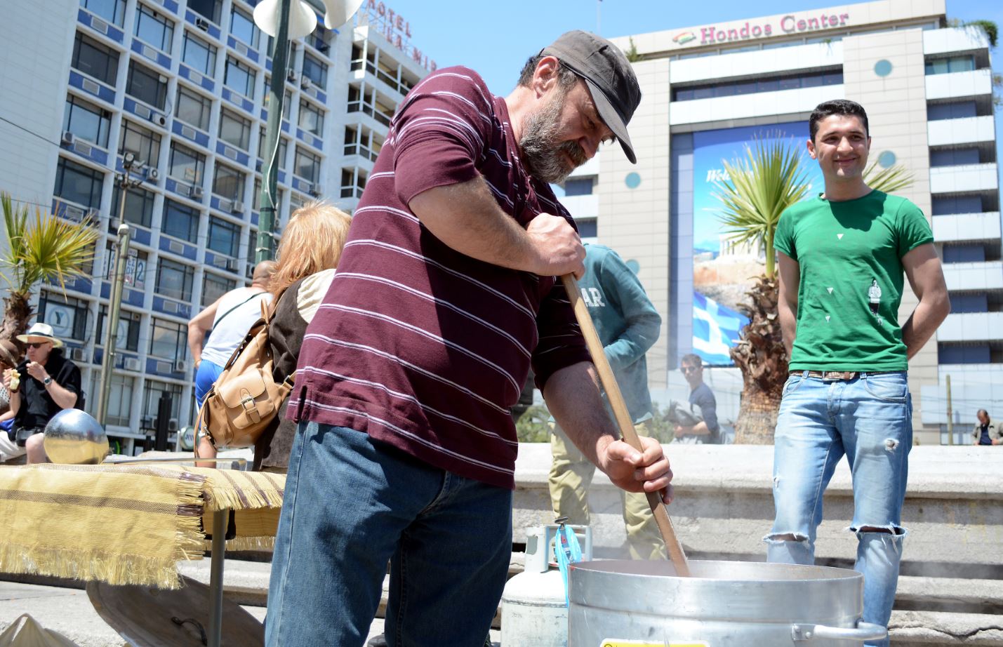 Μέλη της Κοινωνικής Κουζίνας “Ο άλλος άνθρωπος” έστησαν τσουκάλι στην Ομόνοια και μαγείρεψαν για τους μετανάστες αλλά και για οικονομικά αδύναμους πολίτες.