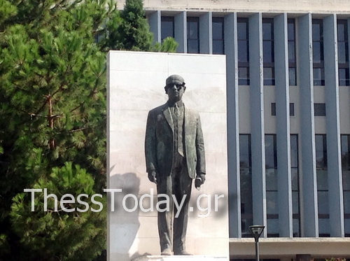 Οι υπάλληλοι στο ΑΠΘ έδεσαν με ένα μαύρο πανί τα «μάτια» του Αριστοτέλη για «να μην βλέπει τι συμβαίνει στο δημόσιο πανεπιστήμιο, στο χώρο της Παιδείας και της γνώσης».