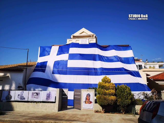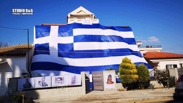 Με μία ελληνική σημαία μεγέθους 140 τ.μ κάλυψαν μία διώροφη κατοικία οι “Φίλοι της Σημαίας” Νέας Κίου στην Αργολίδα, σε μα συμβολική κίνηση ενόψει της επετείου της 25ης Μαρτίου.
