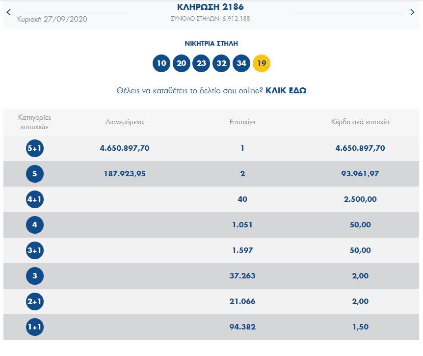 ΤΖΟΚΕΡ: Ένας υπερτυχερός κέρδισε 4,6 εκατομμύρια ευρώ Δήμητρα Κόκκορη 22:47, Κυριακή 27 Σεπτεμβρίου 2020 κοινωνία Ένας υπερτυχερός κέρδισε 4.650.897,70 ευρώ στη σημερινή κλήρωση του ΤΖΟΚΕΡ, ενώ δύο δελτία έκαναν τους ιδιοκτήτες τους κατά 93.961,97 ευρώ πιο πλούσιους. ΚΛΗΡΩΣΗ ΤΖΟΚΕΡ ΤΖΟΚΕΡ Μοιράσου το: σχολίασε κι εσύ (0 σχόλια) Ακολουθήστε το enikos.gr στο Google News και μάθετε πρώτοι όλες τις ειδήσεις Δείτε όλες τις τελευταίες ειδήσεις από την Ελλάδα και τον Κόσμο στο enikos.gr Ειδήσεις Ροή Ειδήσεων 3 ώρες πριν Συνεχίζουν τις κινητοποιήσεις οι αγρότες: Κλείνουν τις σήραγγες των Τεμπών για τα φορτηγά – Τι θα γίνει τα Χριστούγεννα 2 ώρες πριν Μόσχα: Σκοτώθηκε Ρώσος στρατηγός έπειτα από έκρηξη μηχανισμού στο αυτοκίνητό του 2 ώρες πριν Νέες δηλώσεις του αγροτοσυνδικαλιστή Ανεστίδη: Όσα λέγονται είναι λάσπη στον ανεμιστήρα για να σπάσουν τα μπλόκα 46 λεπτά πριν Έπσταϊν: Σάλος με τη φωτογραφία του Τραμπ δίπλα σε γυναίκες με μαγιό – Το εξώφυλλο της πριγκίπισσας Νταϊάνα και η «εμμονή» με τη βασιλική οικογένεια 4 ώρες πριν «Έπιασαν δουλειά» οι 8 κάμερες που λειτουργούν πιλοτικά – Περισσότερες από 1.000 παραβάσεις σε 4 ημέρες 2 ώρες πριν Τα 4 ζώδια που παίρνουν επιτέλους την αναγνώριση που τους αξίζει – «Απρόσμενες ευκαιρίες, που μοιάζουν με δώρα από το σύμπαν» 3 ώρες πριν Ο άνδρας της απαιτεί να κάνει όλες τις δουλειές του σπιτιού από τότε που παραιτήθηκε – «Εξακολουθώ να συνδράμω οικονομικά στο σπίτι» 3 ώρες πριν Ανακαλύφθηκε βραχογράφημα που παραπέμπει στον Ηρακλή και την Ύδρα από ελληνικά νομίσματα του 325 π.Χ. 2 ημέρες πριν Enerwave: Το νέο «ρεύμα» στη λιανική ενέργειας που αλλάζει την εμπειρία του καταναλωτή 6 λεπτά πριν ΥΠΑΑΤ: Καταβλήθηκε η 5η κατανομή ύψους 2,4 εκατ. ευρώ στις Περιφέρειες για λειτουργικές δαπάνες αντιμετώπισης της ευλογιάς 13 λεπτά πριν Θεσσαλονίκη: Παρίσταναν τους υπαλλήλους της ΔΕΗ κι έκλεβαν χρήματα και κοσμήματα – Συνελήφθη 32χρονη και ο 14χρονος γιος της 19 λεπτά πριν Αυστραλία: Βίντεο από το σπάνιο και εντυπωσιακό κύμα «pincer attack» – Γιατί είναι εξαιρετικά επικίνδυνο 27 λεπτά πριν Δημοσκόπηση: Σταθερή η ΝΔ – Πρόσωπο της χρονιάς που φεύγει η Μαρία Καρυστιανού 32 λεπτά πριν Έχετε κρατήσει αυτά 8 αντικείμενα από την παιδική ηλικία σας; Δείτε τι αποκαλύπτει για τον χαρακτήρα σας ENIKOS NETWORK Η χειμερινή δραστηριότητα που μπορεί να αυξήσει τον κίνδυνο καρδιακής προσβολής Χοληστερίνη: Το σημάδι στο δέρμα που μπορεί να δείχνει ότι είναι υπερβολικά υψηλή Κρατική επιχορήγηση έως 14.500 ευρώ: Έως σήμερα η υποβολή των δικαιολογητικών-Ποιους αφορά Αττική: «Έπιασαν δουλειά» οι 8 κάμερες που λειτουργούν πιλοτικά – Τι δείχνουν τα στοιχεία για τις παραβάσεις Χαρτογραφώντας το «σημείο χωρίς επιστροφή»: Για πρώτη φορά αποκαλύπτεται με λεπτομέρεια το ακανθώδες όριο της ατμόσφαιρας τ... Η Google καταργεί τη λειτουργία «dark web report» – Πώς θα μπορούν οι χρήστες να διαγράφουν τα δεδομένα τους περισσότερα 11:19 , Δευτέρα 22 Δεκεμβρίου 2025 Θεσσαλονίκη: Παρίσταναν τους υπαλλήλους της ΔΕΗ κι έκλεβαν χρήματα και κοσμήματα – Συνελήφθη 32χρονη και ο 14χρονος γιος της Μία 32χρονη μαζί με τον 14χρονο γιο της κι έναν 38χρονο κατηγορούνται ότι διέπραξαν μία απάτη ... 09:50 , Δευτέρα 22 Δεκεμβρίου 2025 Καιρός: Δύο κύματα με καταιγίδες και χιόνια στα βουνά τα Χριστούγεννα – Η πρόγνωση για την Πρωτοχρονιά Άστατος αναμένεται να είναι ο καιρός τις επόμενες ημέρες, μέχρι τα Χριστούγεννα, σε διάφορες π... 09:21 , Δευτέρα 22 Δεκ