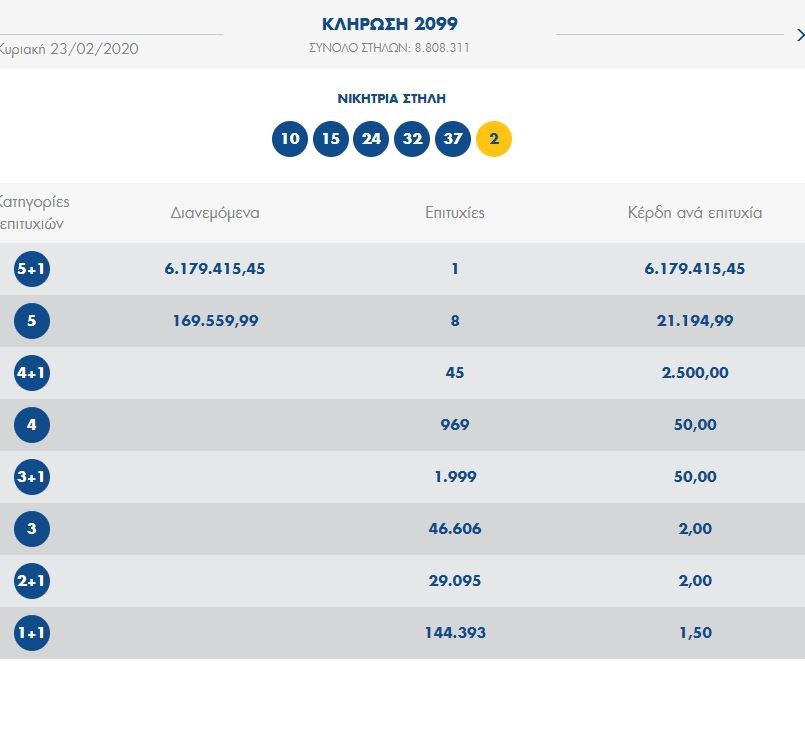 ΤΖΟΚΕΡ: Ένας υπερτυχερός κέρδισε 6,1 εκατ. ευρώ Κυριάκος Γεωργόπουλος 22:07, Κυριακή 23 Φεβρουαρίου 2020 κοινωνία Οι τυχεροί αριθμοί του ΤΖΟΚΕΡ: 10, 15, 24, 32, 37 ΤΖΟΚΕΡ: 2 Η ΚΛΗΡΩΣΗ ΤΟΥ ΤΖΟΚΕΡ ΤΖΟΚΕΡ ΤΥΧΕΡΟΙ ΑΡΙΘΜΟΙ Μοιράσου το: σχολίασε κι εσύ (0 σχόλια) Ακολουθήστε το enikos.gr στο Google News και μάθετε πρώτοι όλες τις ειδήσεις Δείτε όλες τις τελευταίες ειδήσεις από την Ελλάδα και τον Κόσμο στο enikos.gr Ειδήσεις Ροή Ειδήσεων 6 ώρες πριν Δολοφονία Ελένης Παπαδοπούλου: Σε τρεις φάσεις ο μηχανισμός θανάτου – Τα στοιχεία που οδήγησαν στη σύλληψη του γιου της 6 ώρες πριν Ξεγελάστηκαν από τον καλό καιρό οι ορειβάτες που βρέθηκαν νεκροί – Το χρονικό της τραγωδίας στα Βαρδούσια Όρη 6 ώρες πριν Συνάντηση Ζελένσκι – Τραμπ: Τα θέματα και τα «αγκάθια» που θα συζητηθούν – Γιατί ανεβάζει τώρα ταχύτητες το Κίεβο στη διπλωματία 5 ώρες πριν Θρίλερ με το αυτοκίνητο που βρέθηκε στις Σέρρες – Κλιμάκιο της Πυροσβεστικής στο σημείο για να διαπιστώσει αν ανήκει στον αγνοούμενο πυροσβέστη 7 ώρες πριν Θάνατος 7χρονου στην Ροδόπη: Για εμπρησμό από αμέλεια κατηγορείται η μητέρα του – Σε σοβαρή κατάσταση νοσηλεύεται ο αδελφός του 6 ώρες πριν «Ευλογία από τους Αγίους Τόπους»: Ανακαλύφθηκε καλούπι 1.400 ετών για τα πρώτα σουβενίρ – Ο περίτεχνος σταυρός και η ελληνική επιγραφή 7 ώρες πριν Ύπνος: Το απλό κόλπο με τη θερμοκρασία του σώματος που σας βοηθάει να χαλαρώσετε, σύμφωνα με ειδικούς 8 ώρες πριν Όσοι έχετε γεννηθεί αυτούς τους 3 μήνες, περάσατε δύσκολα το 2025 – «Το 2026 η τύχη σας αλλάζει και θα αποζημιωθείτε» 9 ώρες πριν Φούρνος: Ο φυσικός και οικονομικός τρόπος για να εξαφανίσετε τη μυρωδιά καμένου 3 λεπτά πριν Τραμπ: Δεν σκοπεύει να αναγνωρίσει την ανεξαρτησία της Σομαλιλάνδης 24 λεπτά πριν Κιμ Γιονγκ Ουν: Στον πόλεμο της Ουκρανίας σφυρηλατήθηκαν «δεσμοί αίματος» μεταξύ της Βόρειας Κορέας και της Ρωσίας 44 λεπτά πριν Σπύρος Μπιμπίλας: «Ο πατέρας μου πέθανε πολύ επώδυνα – Μετά την ταφή έπιασε φωτιά το σπίτι…» 1 ώρα πριν Euroleague: Η βαθμολογία μετά την νίκη-θρίλερ του Ολυμπιακού στην Μπολόνια 1 ώρα πριν Άγιος Δημήτριος: Σκύλος σώθηκε την τελευταία στιγμή από κατάρρευση αυλής στο ρέμα της Πικροδάφνης – ΒΙΝΤΕΟ ENIKOS NETWORK Μπορούν τα κόκκινα νύχια να προσελκύσουν τον άνδρα που επιθυμείτε – Τι δείχνει νέα έρευνα Η makeup artist της Julia Roberts αποκαλύπτει το τρικ της για φυσικά και γεμάτα χείλη Επιστροφές ΕΝΦΙΑ: Ποιοι ιδιοκτήτες θα πάρουν πίσω χρήματα για φόρους που είχαν πληρώσει Επίδομα μητρότητας: Τι αλλάζει για χιλιάδες μητέρες Ο Google Assistant θα παραμείνει λίγο περισσότερο για ορισμένους χρήστες Android Τεστ προσωπικότητας: Το βάζο που θα επιλέξετε αποκαλύπτει πώς λύνετε προβλήματα στη ζωή σας περισσότερα 03:20 , Σάββατο 27 Δεκεμβρίου 2025 Άγιος Δημήτριος: Σκύλος σώθηκε την τελευταία στιγμή από κατάρρευση αυλής στο ρέμα της Πικροδάφνης – ΒΙΝΤΕΟ Κυριολεκτικά την τελευταία στιγμή γλίτωσε ένας σκύλος στον Άγιο Δημήτριο, όταν κατέρρευσε η αυ... 22:50 , Παρασκευή 26 Δεκεμβρίου 2025 Δολοφονία Ελένης Παπαδοπούλου: Σε τρεις φάσεις ο μηχανισμός θανάτου – Τα στοιχεία που οδήγησαν στη σύλληψη του γιου της Για περισσότερα από τρία χρόνια, θεωρούνταν πως η 87χρονη Ελένη Παπαδοπούλου, αποκοιμήθηκε με ... 22:40 , Παρασκευή 26 Δεκεμβρίου 2025 Ξεγελάστηκαν από τον καλό καιρό οι ορειβάτες που βρέθηκαν νεκροί – Το χρονικό της τραγωδίας στα Βαρδούσια Όρη Τραγική κατάληξη είχε η αναζήτηση των τεσσάρων ορειβατών που αγνοούνταν από το πρωί των Χρι
