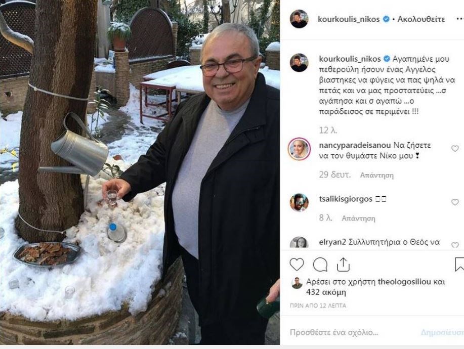Και ο σύζυγός της, Νίκος Κουρκούλης δημοσίευσε φωτογραφία του πεθερού του και έγραψε: «Αγαπημένε μου πεθερούλη ήσουν ένας Αγγελος βιαστηκες να φύγεις να πας ψηλά να πετάς και να μας προστατεύεις …σ αγάπησα και σ αγαπώ …ο παράδεισος σε περιμένει !!!»Πηγή: gossip-tv.gr