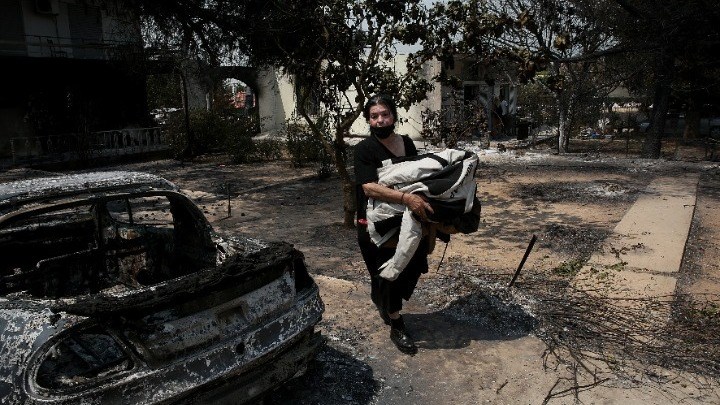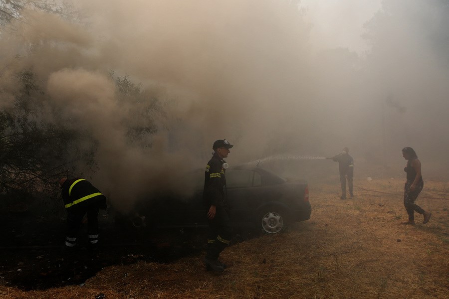 «Μόλις είχαμε ποτίσει και είχαμε κάτσει να φάμε και ξαφνικά ακούμε δύο εκρήξεις δυνατές, βγήκαμε έξω και βλέπουμε όλη την πίσω πλευρά να καίγεται και τελευταία στιγμή μάς φώναζαν, φύγετε τώρα. Δεν προλάβαμε να πάρουμε τίποτα. Τρέχοντας φεύγαμε, προσπαθούσαμε να βάλουμε το σκυλί στο αμάξι, να ελευθερώσουμε τα ζώα από πίσω, τα οποία όπως είδαμε, είναι τα περισσότερα ζωντανά και μας περίμεναν το πρωί», επισημαίνει στο ΑΠΕ-ΜΠΕ. Εκείνη και η οικογένεια της βρίσκονταν σε πανικό και δεν ήξεραν τι να κάνουν. «Από τη μία δεν θες να αφήσεις το σπίτι σου, από την άλλη σου φωνάζουν τρέξε να σωθείς», εξηγεί. Κατά μήκος του δρόμου της οδού Ερυθραίας ο καπνός έχει καλύψει τα πάντα και ο κ. Σπύρος επέστρεψε στην κατοικία του βρίσκοντας την χελώνα που τον επισκεπτόταν κάθε χρόνο καμένη. Καμένος όμως ήταν και ο εξωτερικός χώρος της κατοικίας τους. «Υπάρχουν εξωτερικές φθορές στο σπίτι, στα 150 μέτρα όταν είδα τη φωτιά πήρα το αυτοκίνητο κι έφυγα», λέει στο ΑΠΕ-ΜΠΕ.