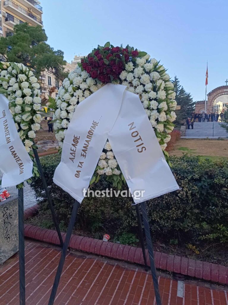 «Αδελφέ θα τα ξαναπούμε…», γράφει το στεφάνι που έστειλε ο Νότης Σφακιανάκης. Στεφάνι έστειλε επίσης και η οικογένεια του Παντελή Παντελίδη.
